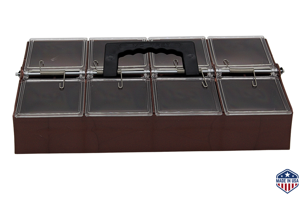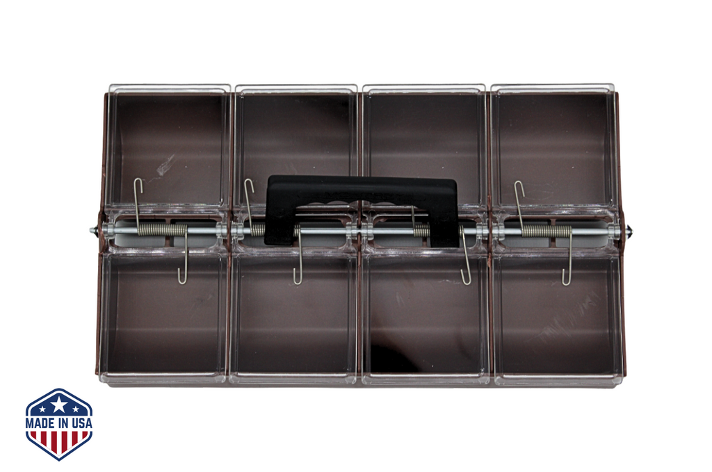The DL-8 has 8 individual compartments with 8 individually spring-loaded lids.