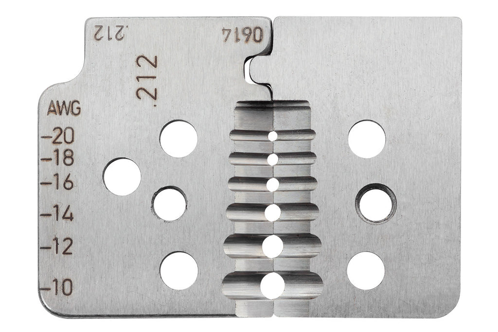 | 708 212 3 | Complete Stripping Tool (Frame with installed stripping blades) for special cable with PTFE, glass fiber braid, and Kapton® film insulation AWG 20-10 / Black-Oxide finish | - | 10 AWG 12 AWG 14 AWG 16 AWG 18 AWG 20 AWG |