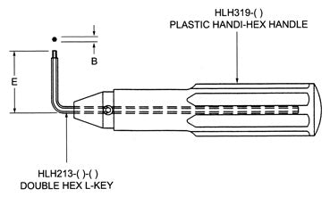 | Complete Tool Assembly Part Number | B | E | Plastic Handi-Hex Handle | High-Strength Hex Key Part Number |