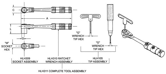 | “M” Socket Hex | “G” Wrench Tip Hex | Complete Tool Assy. Part Number |