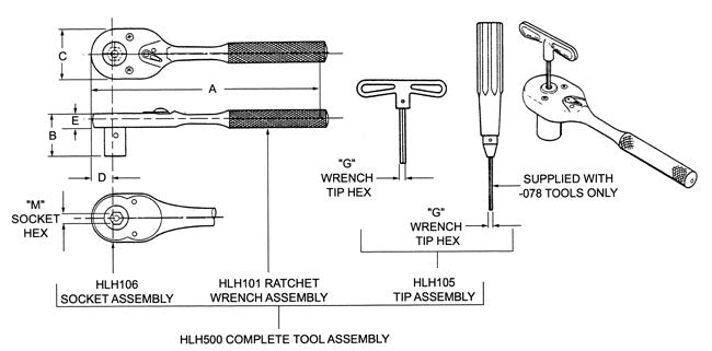 • See table for “M” socket hex and “G” wrench tip hex combination to match collar driving hex and pin recess hex dimensions.
