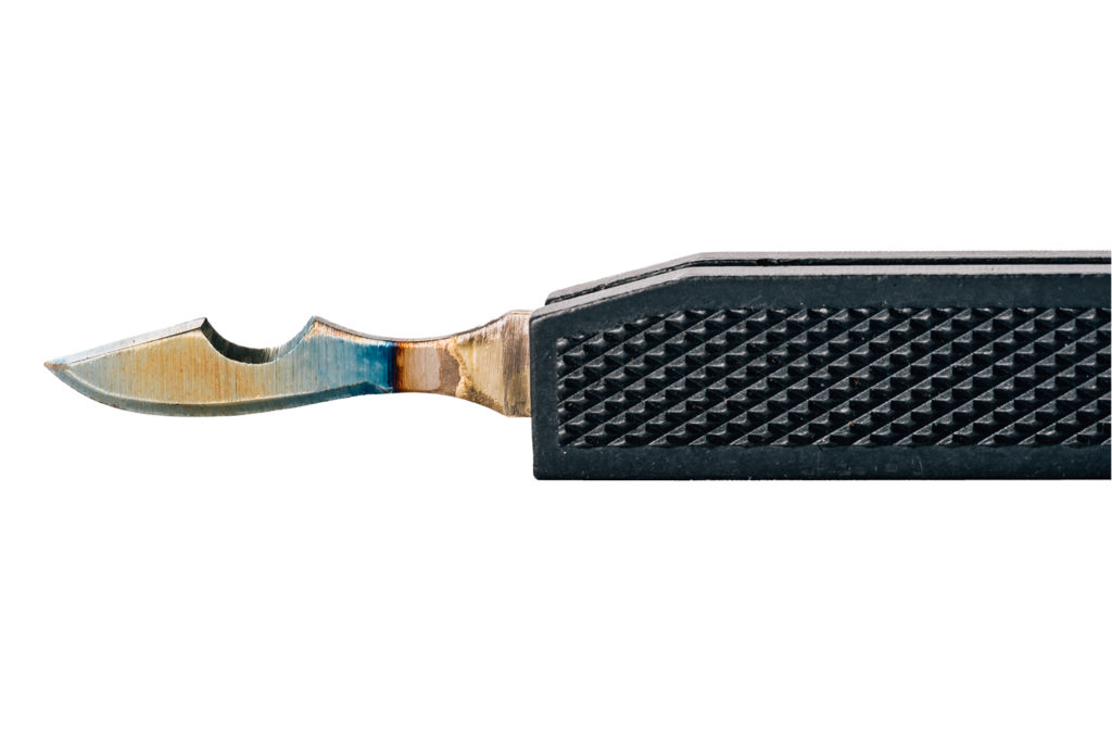 - Finely honed blade with both convex and concave edges
