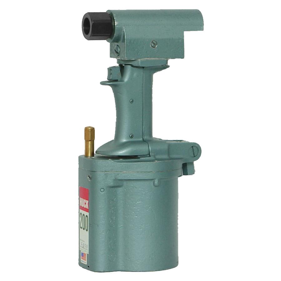 Huck® Pneudraulic Riveter, 1.187 Inch (30.15mm) Stroke, 18 cfm (509.7 lpm) Flow Rate, Hydraulic Fluid: Automatic Transmission Fluid meeting DEXRON® III, DEXRON VI, MERCON®, Allison C-4 or equivalent, Cylinder Diameter: 4.763 Inch (121.00mm), Width of Head: 2.000 Inch (50.80mm), Length of Head: 6.496 Inch (165.00mm), Center to Edge: 0.875 Inch (22.22mm), Weight 10.5lb. (4.76kg)